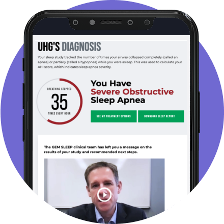 After completing your home sleep test, you receive a diagnosis and the recommended treatment plan from our expert clinical staff. If your results indicate obstructive sleep apnea (OSA), GEM SLEEP makes it easy to order an auto-adjusting Continuous Positive Airway Pressure (CPAP) machine or get a referral to a dental clinic. Getting started with treatment is easy with your GEM SLEEP account.